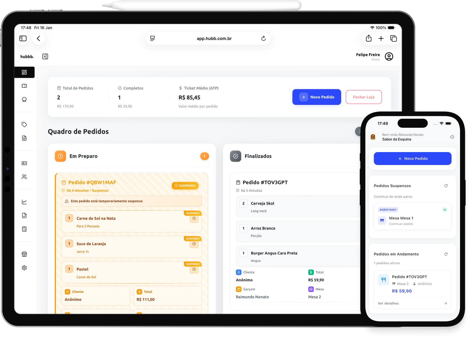 O controle total da cozinha e do salão na palma da mão.